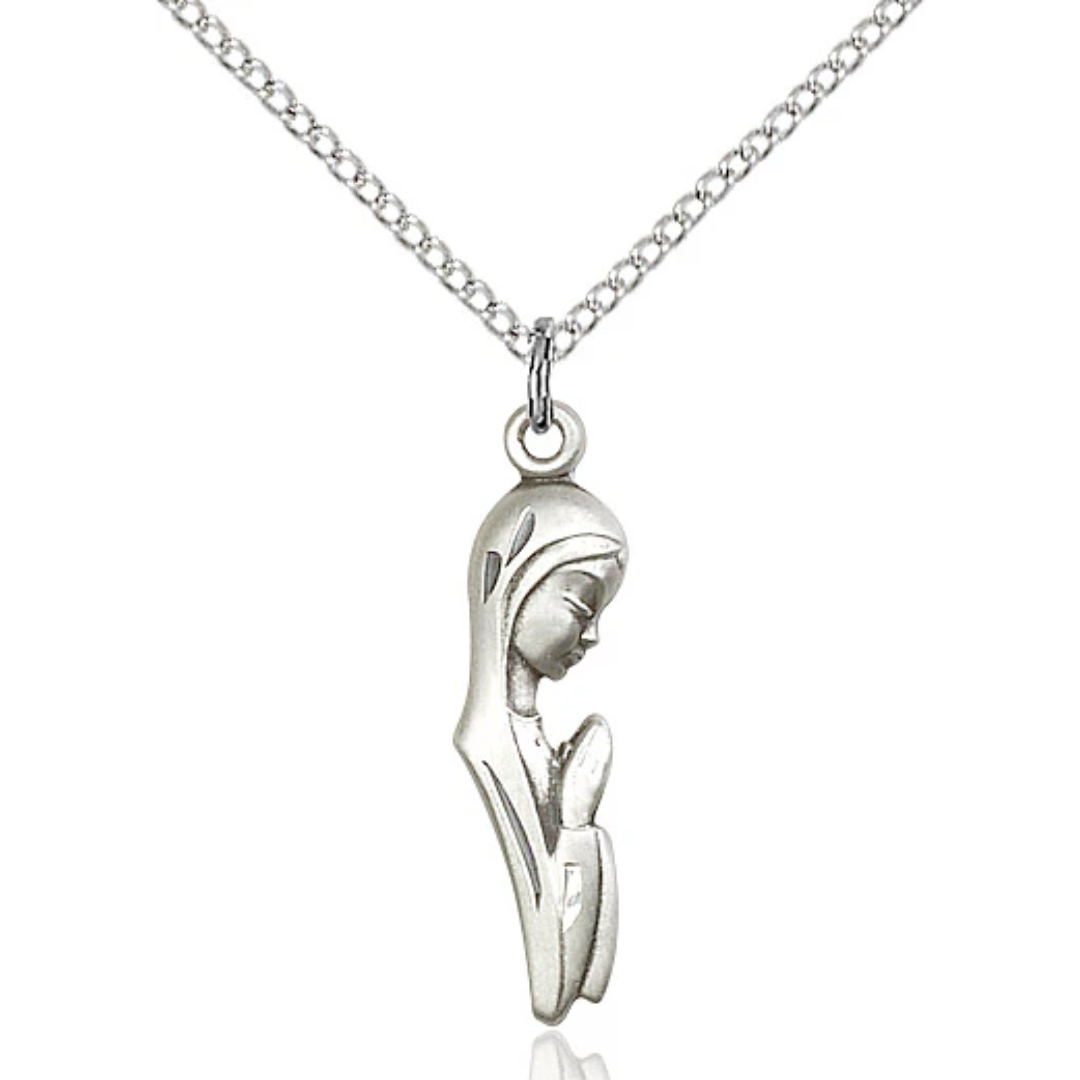 1 x 1/4 Sterling Silver Madonna Pendant on 18 inch Sterling Silver Light Curb Chain