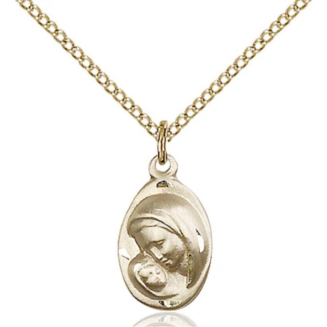 5/8 x 3/8 14kt Gold Filled Madonna & Child Pendant on 18 inch Gold Filled Light Curb Chain