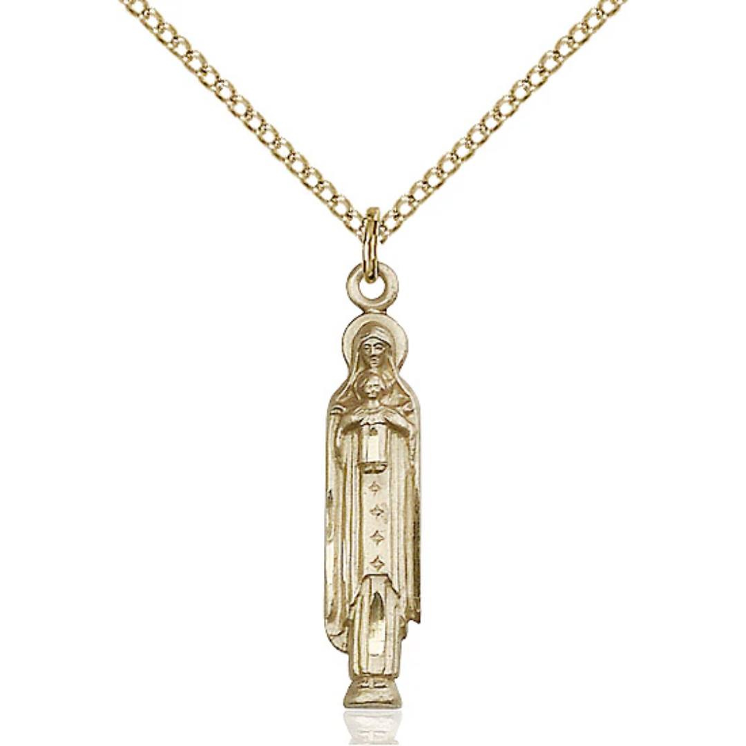 1 x 1/8 14kt Gold Filled Madonna & Child Pendant on 18 inch Gold Filled Light Curb Chain