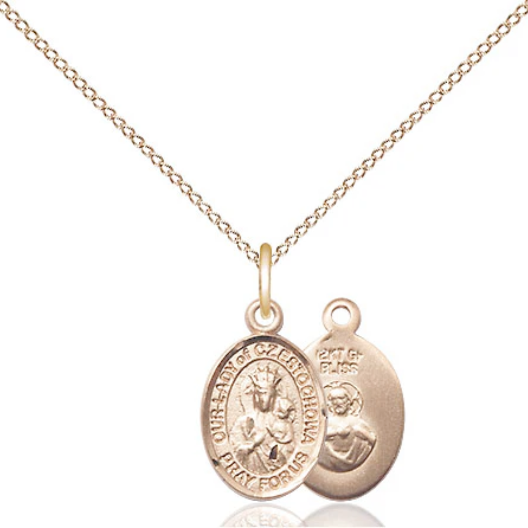 1/2 x 1/4 14kt Gold Filled O/L of Czestochowa Pendant on 18 inch Gold Filled Light Curb Chain