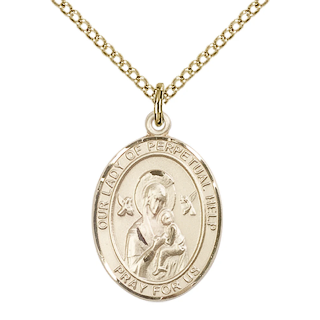 3/4 x 1/2 14kt Gold Filled O/L of Perpetual Help Pendant on 18 inch Gold Filled Light Curb Chain