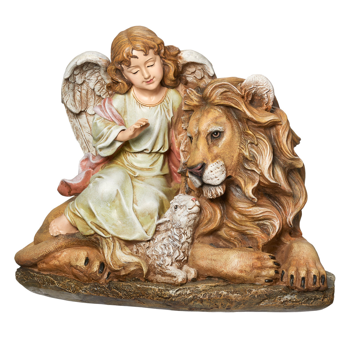 This exquisitely detailed Lion and Lamb with Angel figure from Joseph™s Studio portrays a timeless message of peace, harmony, and divine protection. The angel™s gentle presence beside the lion and lamb reflects the perfect balance of strength and serenity. With hand-painted artistry and lifelike expression, this piece makes a meaningful addition to any mantel, prayer space, or collection, and a thoughtful gift for those seeking comfort and faith.
