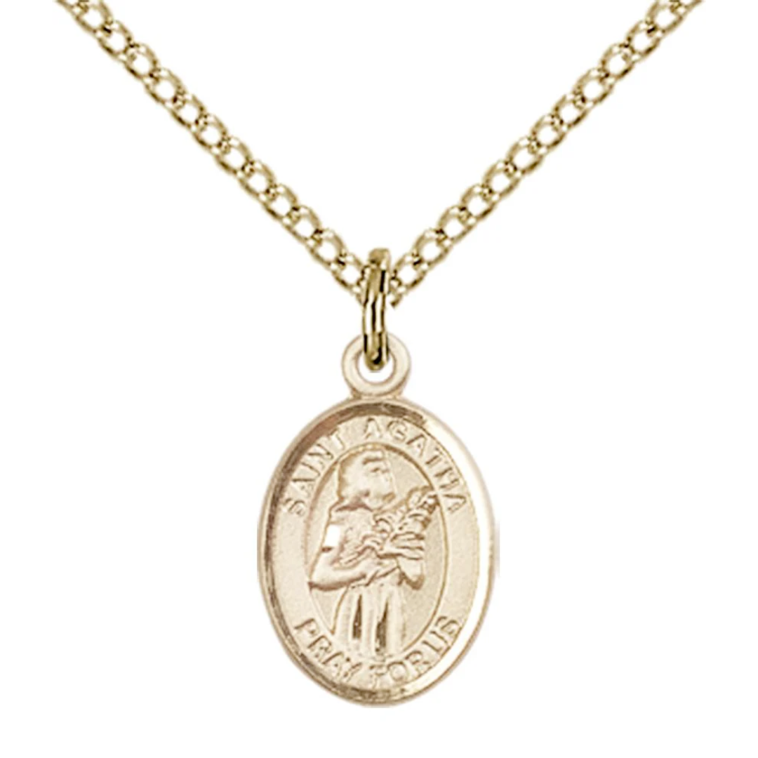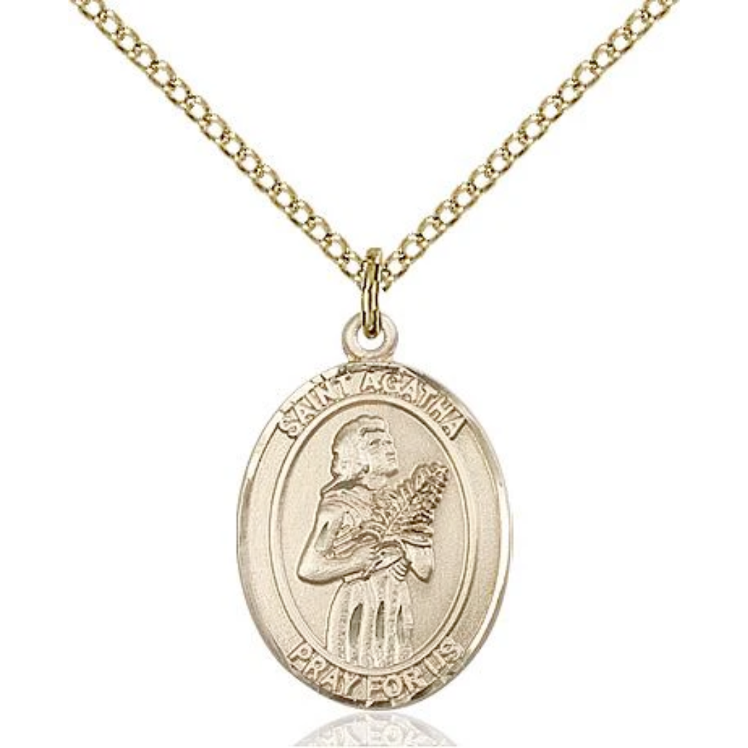 3/4 x 1/2 14kt Gold Filled St. Agatha Pendant on 18 inch Gold Filled Light Curb Chain