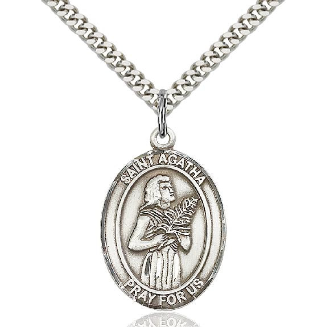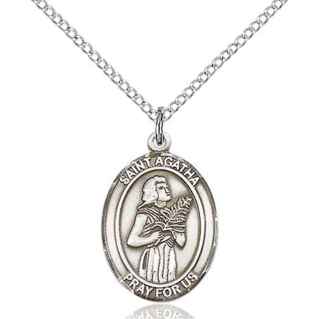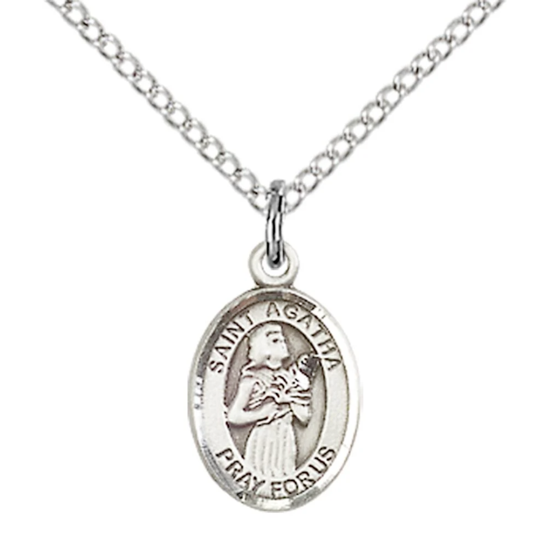 3/4 x 1/2 Sterling Silver St. Agatha Pendant on 18 inch Sterling Silver Light Curb Chain