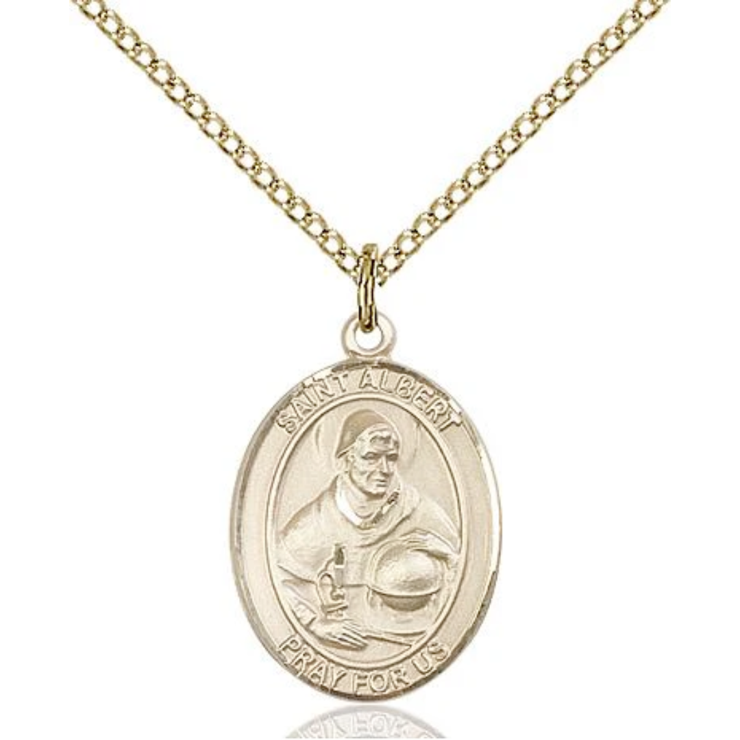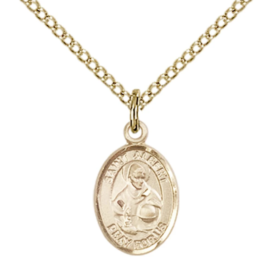 1/2 x 1/4 14kt Gold Filled St. Albert the Great Pendant on 18 inch Gold Filled Light Curb Chain