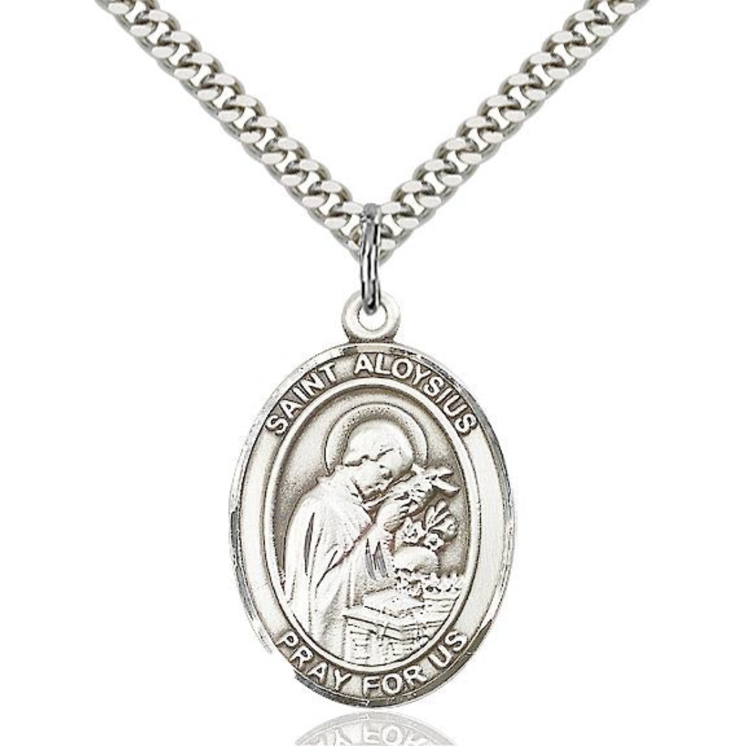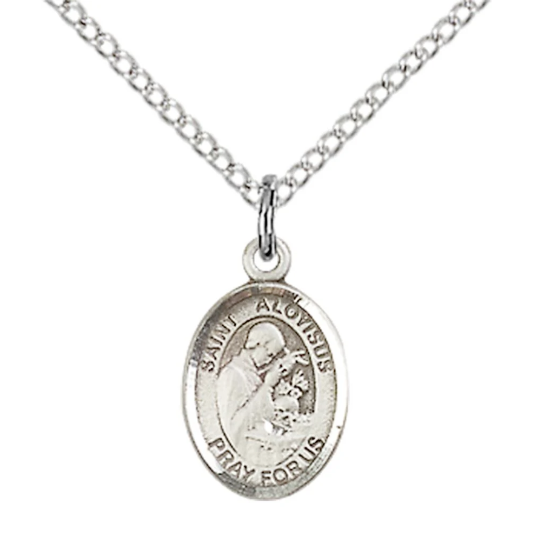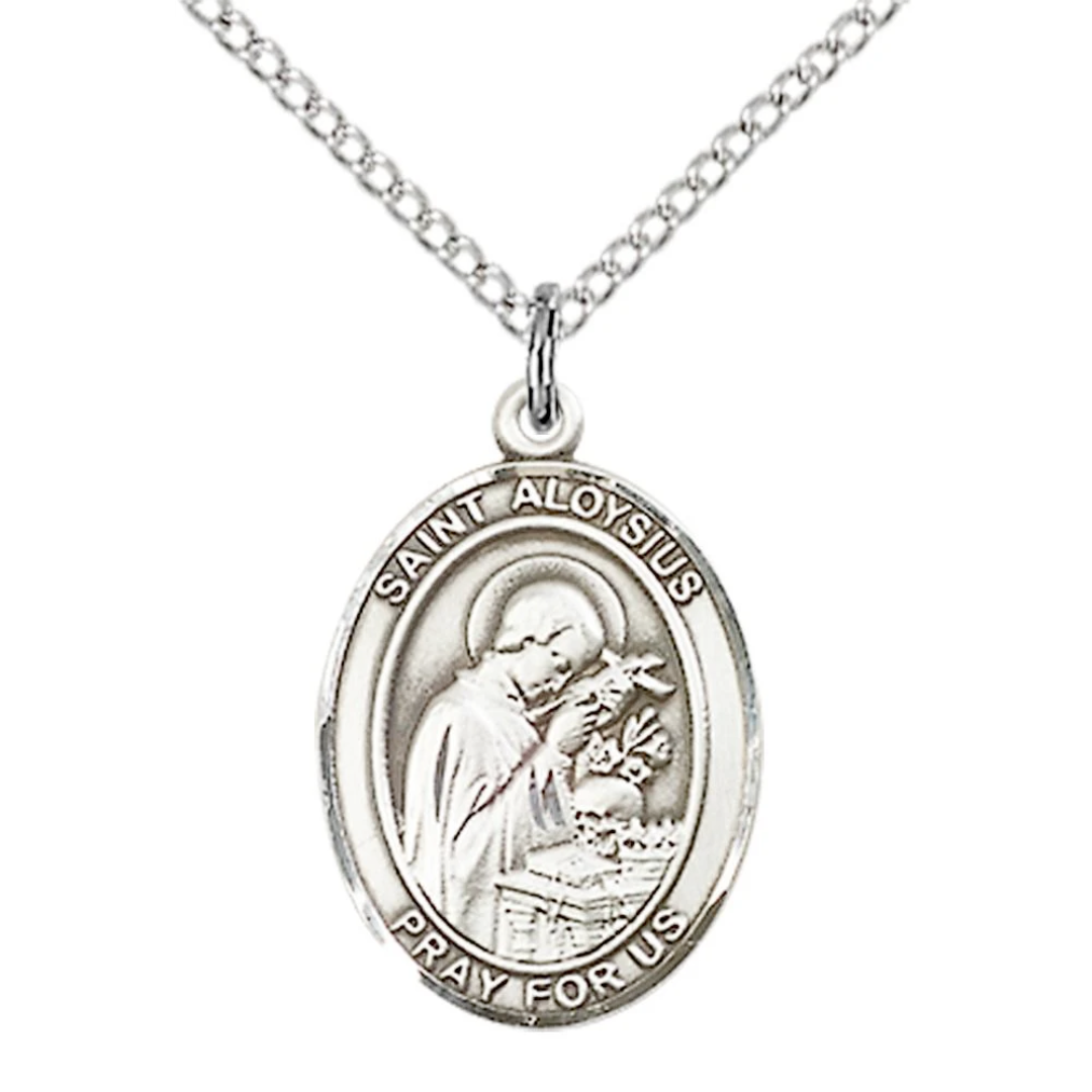 3/4 x 1/2 Sterling Silver St. Aloysius Gonzaga Pendant on 18 inch Sterling Silver Light Curb Chain