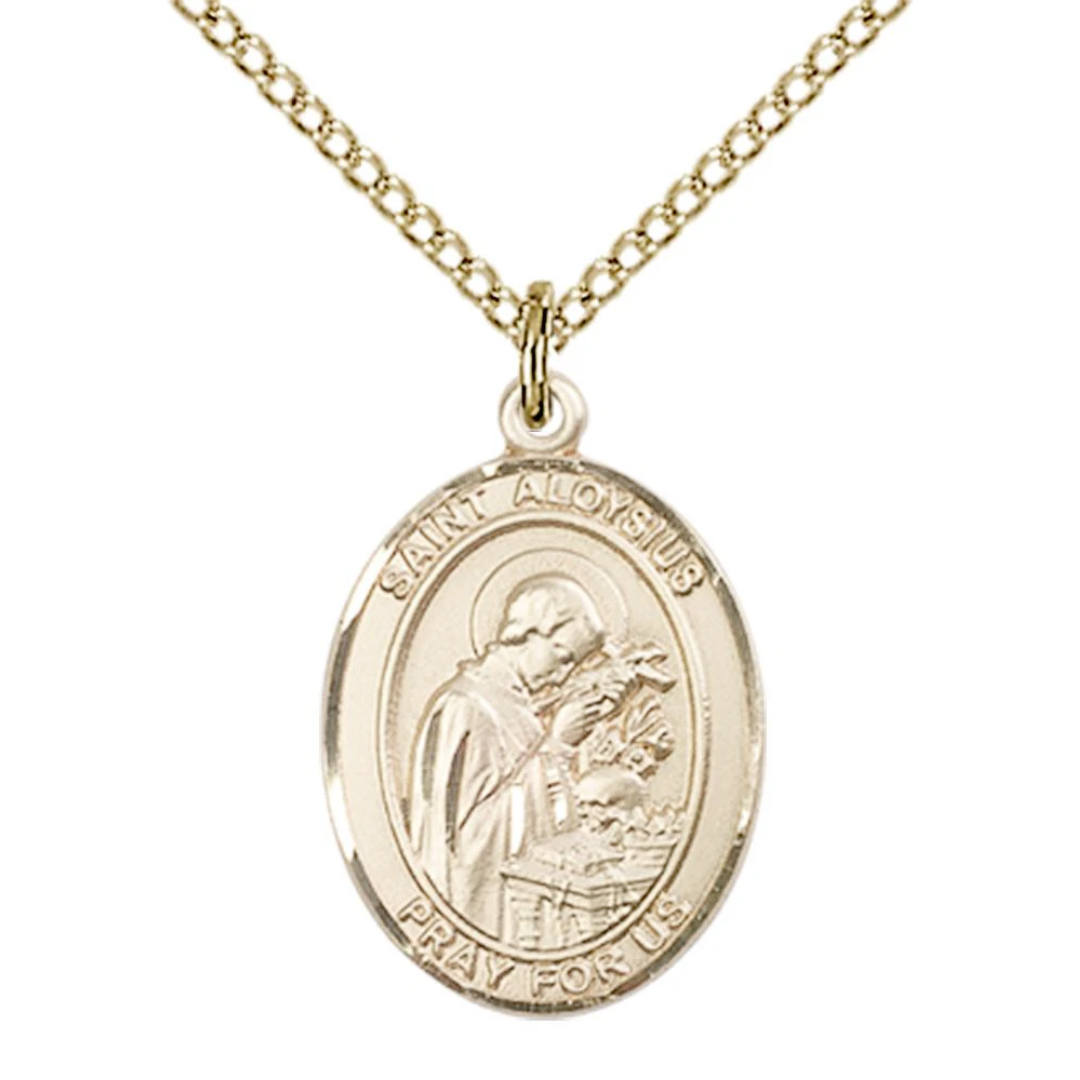 3/4 x 1/2 14kt Gold Filled St. Aloysius Gonzaga Pendant on 18 inch Gold Filled Light Curb Chain