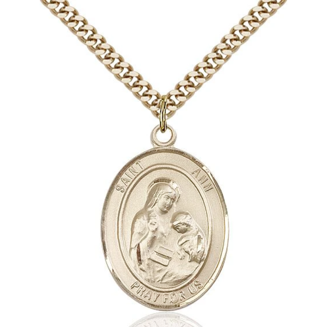 1 x 3/4 14kt Gold Filled St. Ann Pendant on 24 inch Gold Plate Heavy Curb Chain