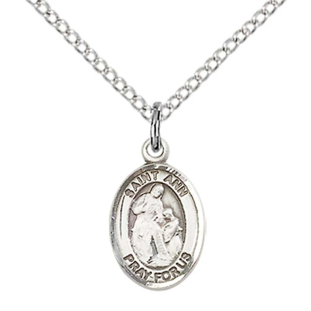 3/4 x 1/2 Sterling Silver St. Ann Pendant on 18 inch Sterling Silver Light Curb Chain