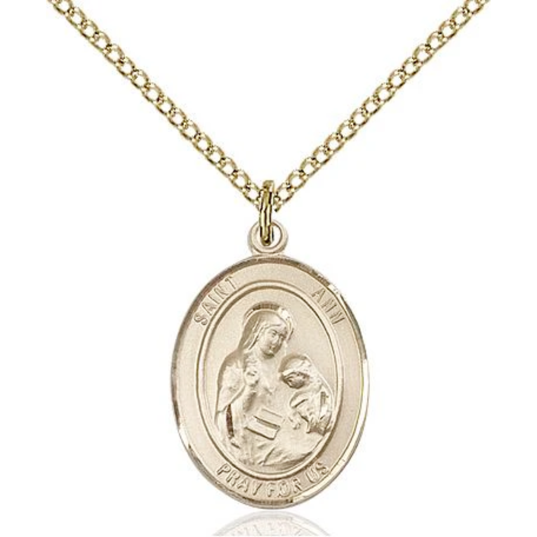 3/4 x 1/2 14kt Gold Filled St. Ann Pendant on 18 inch Gold Filled Light Curb Chain