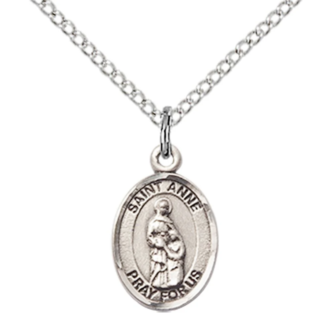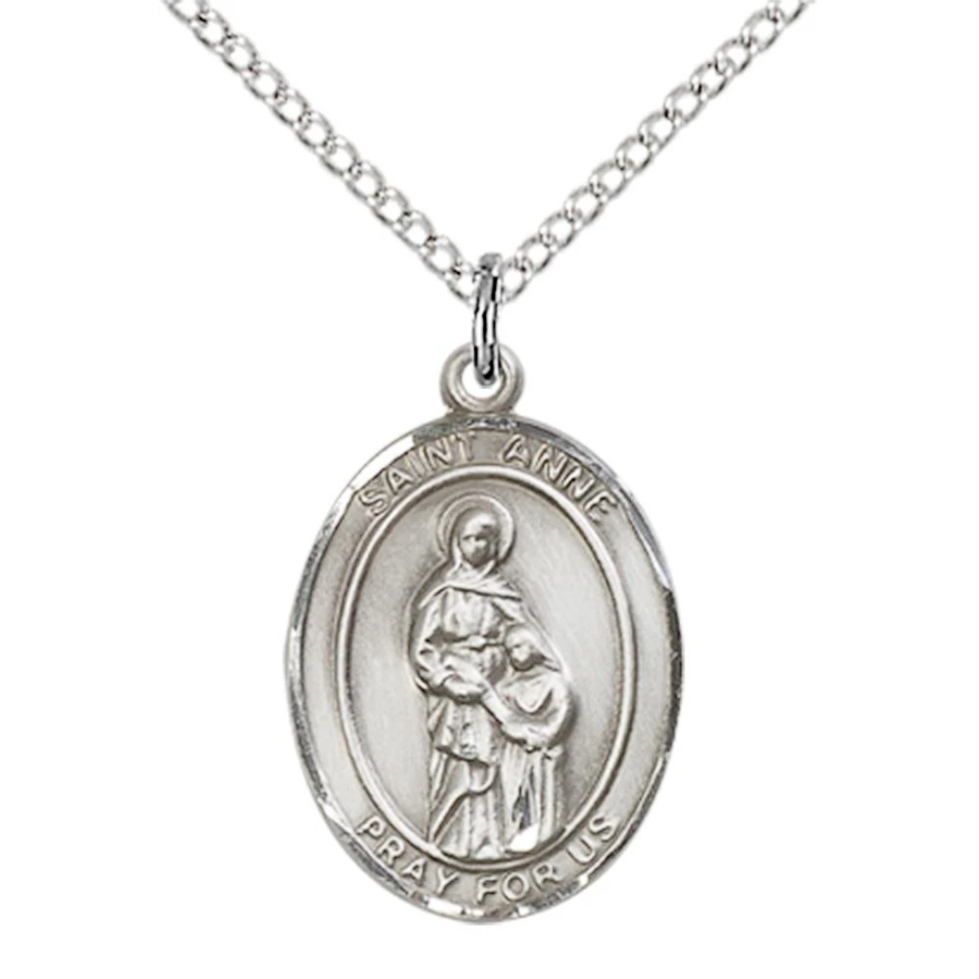 3/4 x 1/2 Sterling Silver St. Anne Pendant on 18 inch Sterling Silver Light Curb Chain