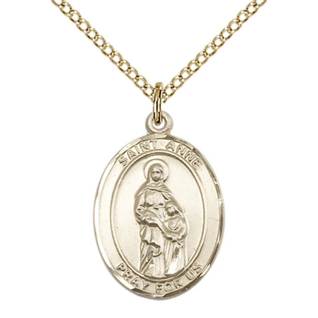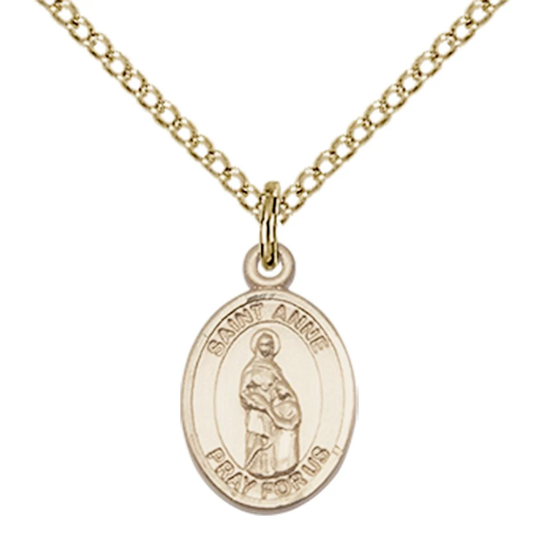 3/4 x 1/2 14kt Gold Filled St. Anne Pendant on 18 inch Gold Filled Light Curb Chain
