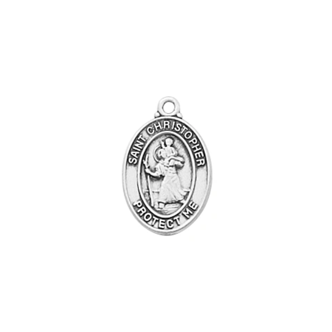 Sterling Silver St. Christopher medal with 16in Rhodium plated brass chain and Deluxe Gift Box