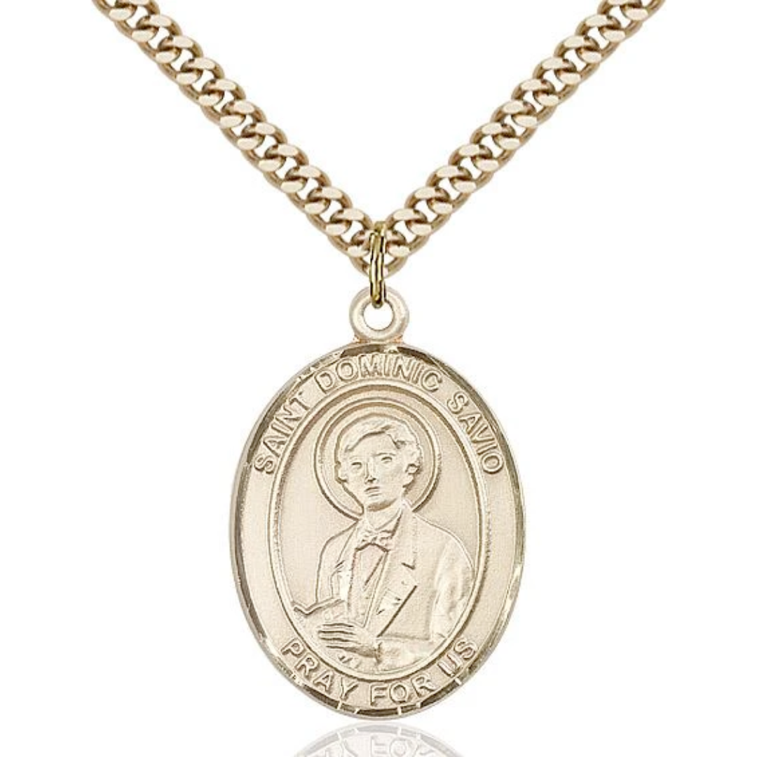 3/4 x 1/2 14kt Gold Filled St. Dominic Savio Pendant on 18 inch Gold Filled Light Curb Chain