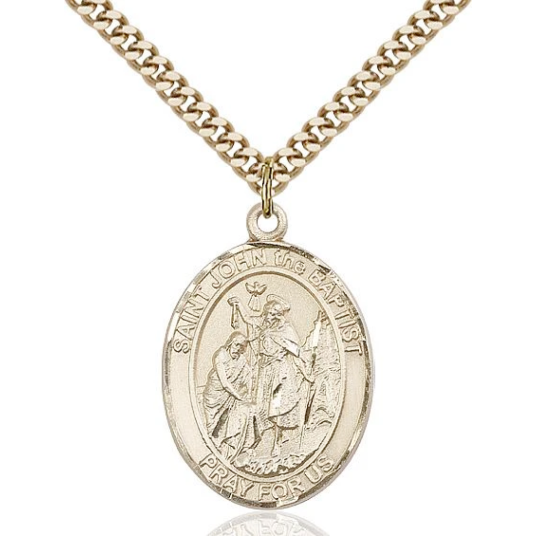 3/4 x 1/2 14kt Gold Filled St. John the Baptist Pendant on 18 inch Gold Filled Light Curb Chain