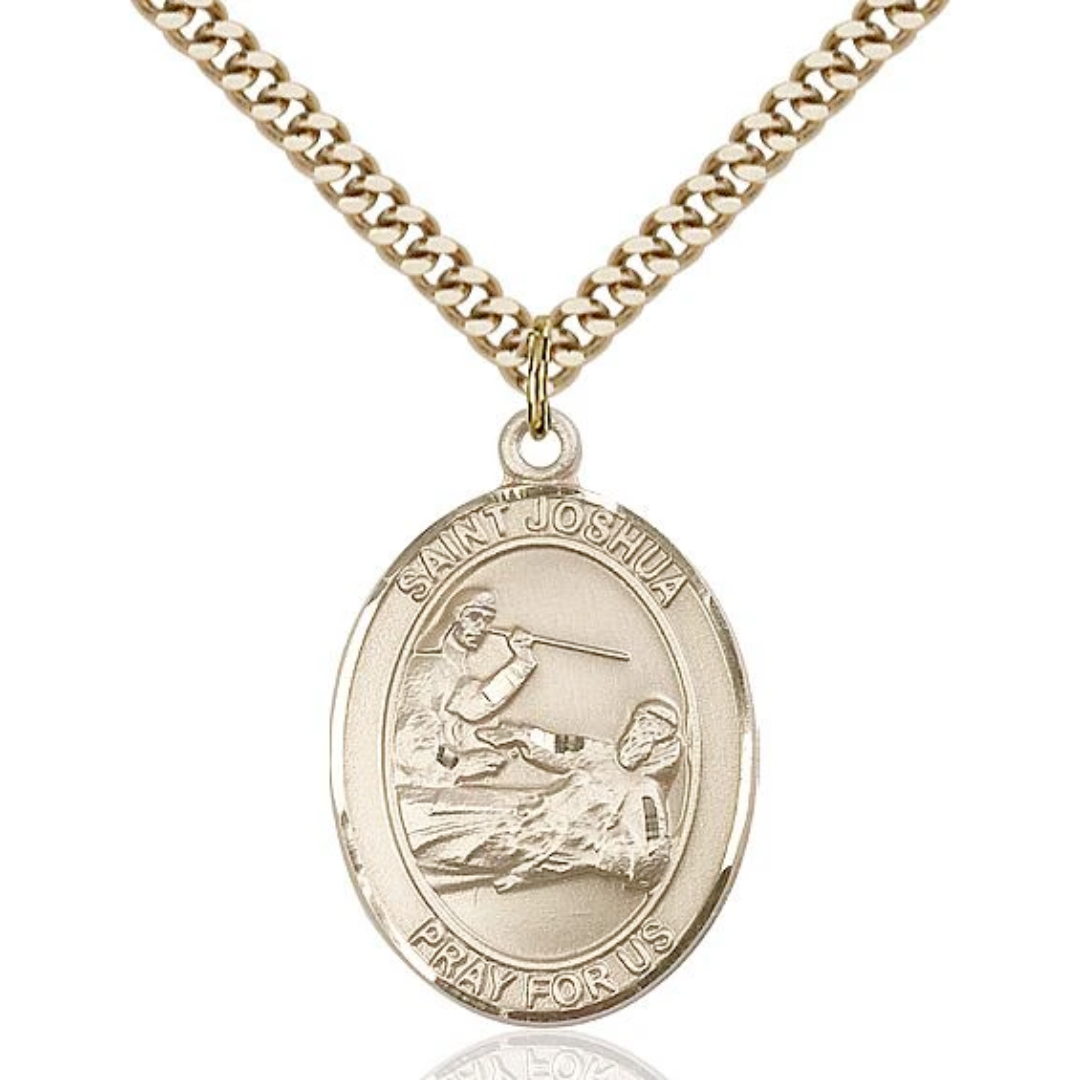 1 x 3/4 14kt Gold Filled St. Joshua Pendant on 24 inch Gold Plate Heavy Curb Chain