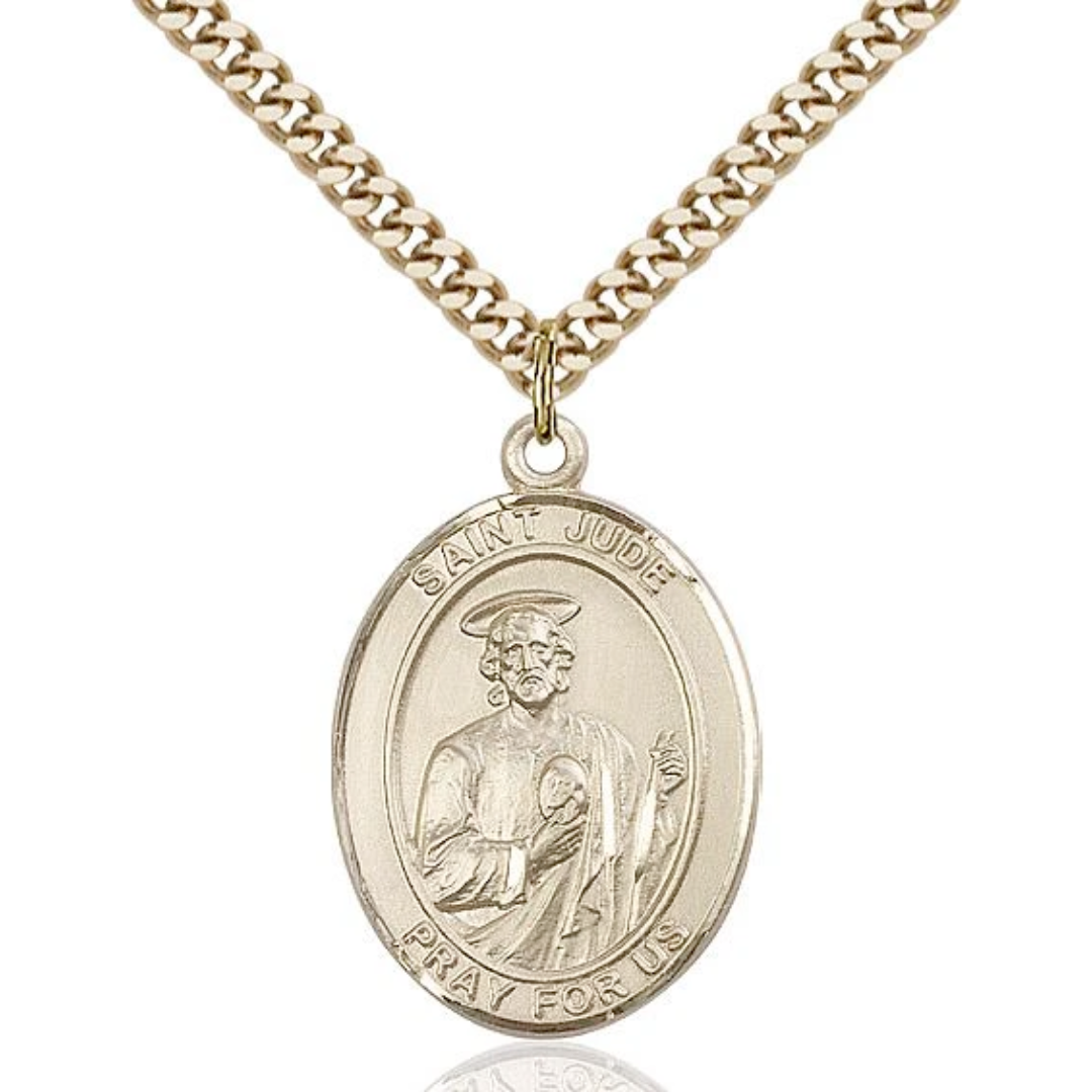 3/4 x 1/2 14kt Gold Filled St. Jude Thaddeus Pendant on 18 inch Gold Filled Light Curb Chain