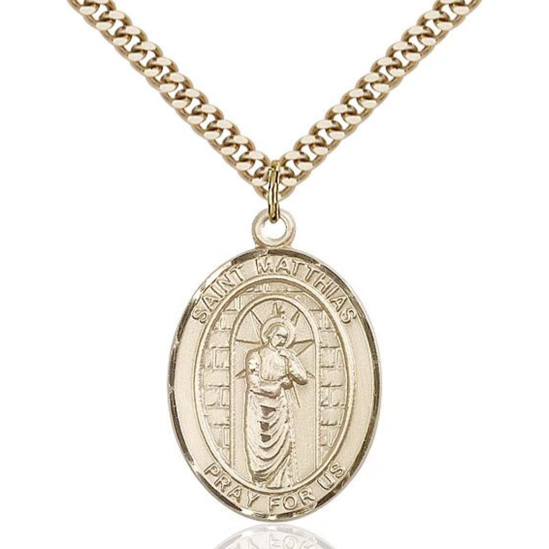3/4 x 1/2 14kt Gold Filled St. Matthias the Apostle Pendant on 18 inch Gold Filled Light Curb Chain
