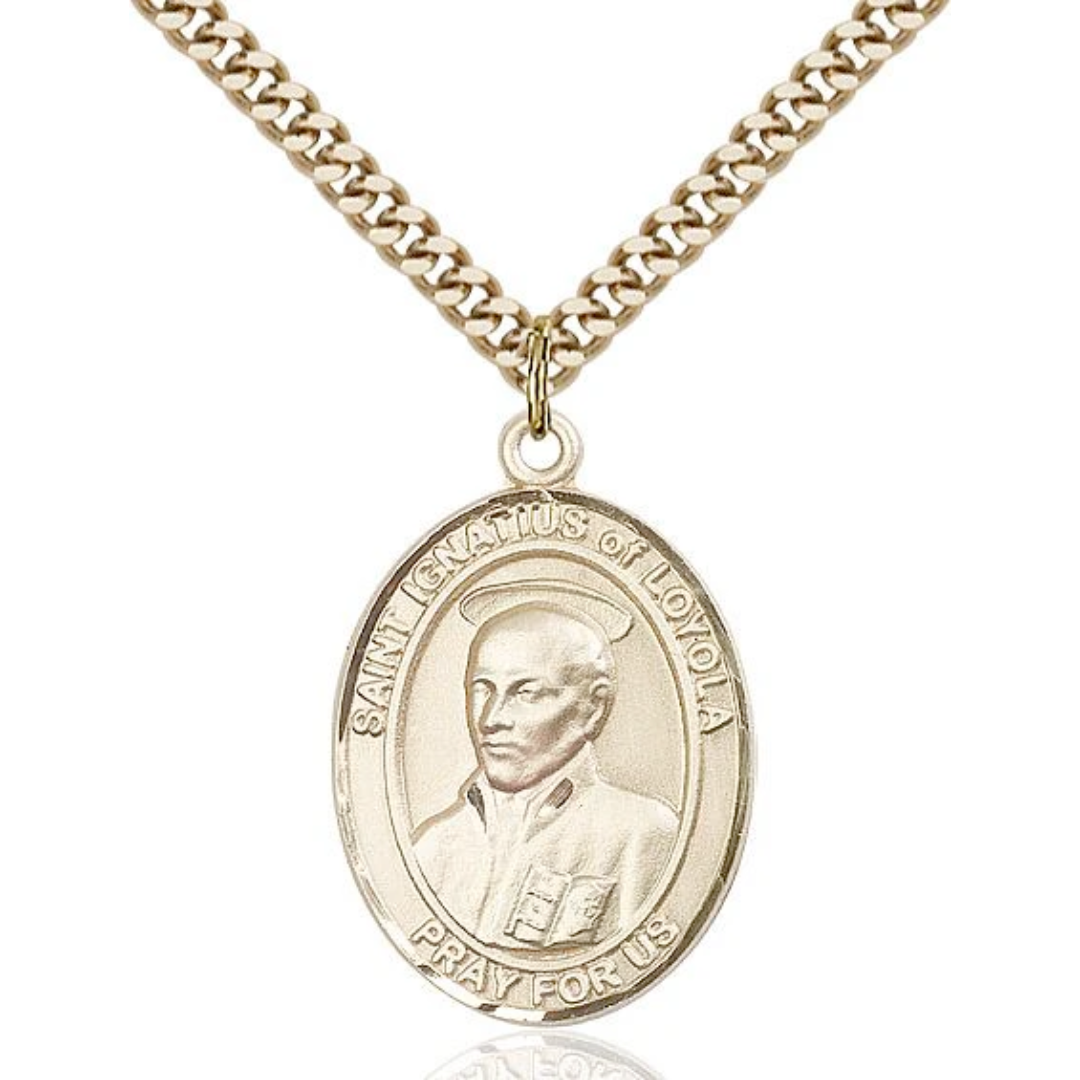 3/4 x 1/2 14kt Gold Filled St. Ignatius of Loyola Pendant on 18 inch Gold Filled Light Curb Chain