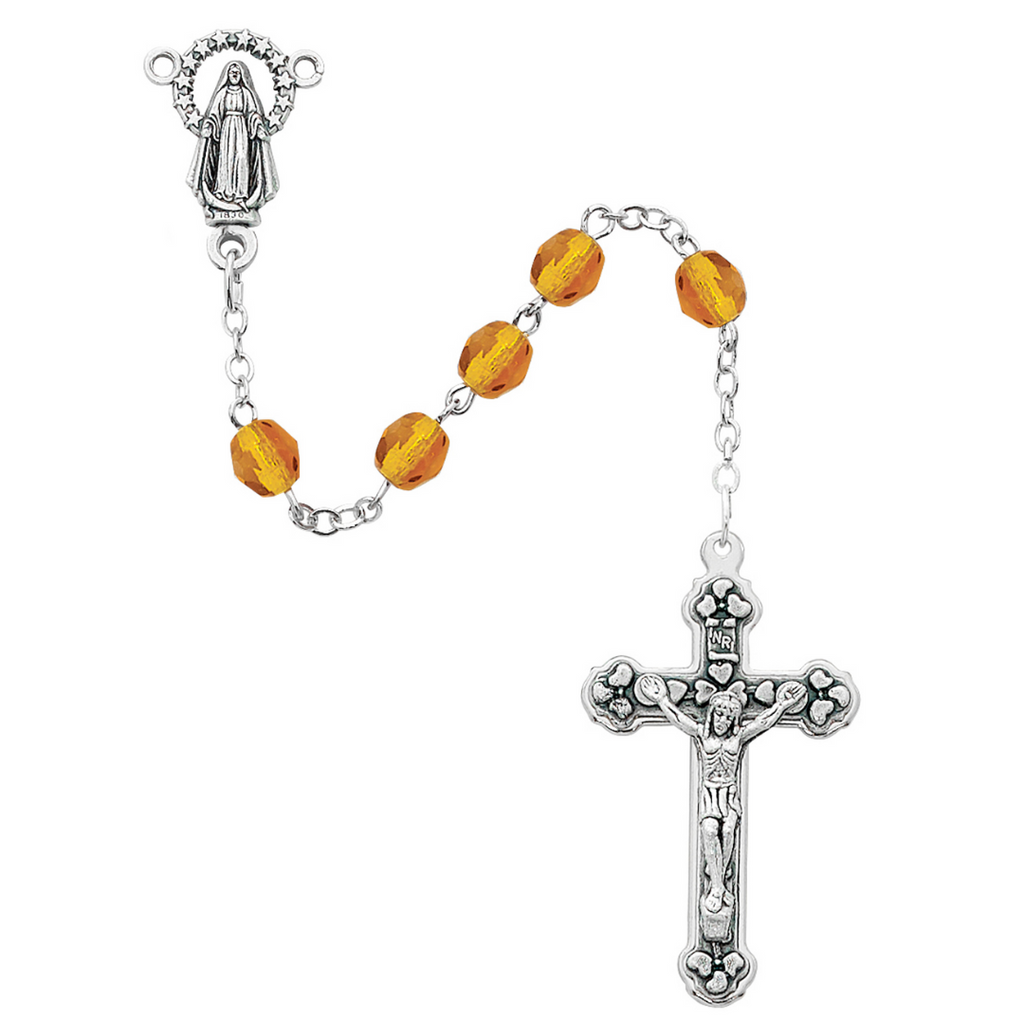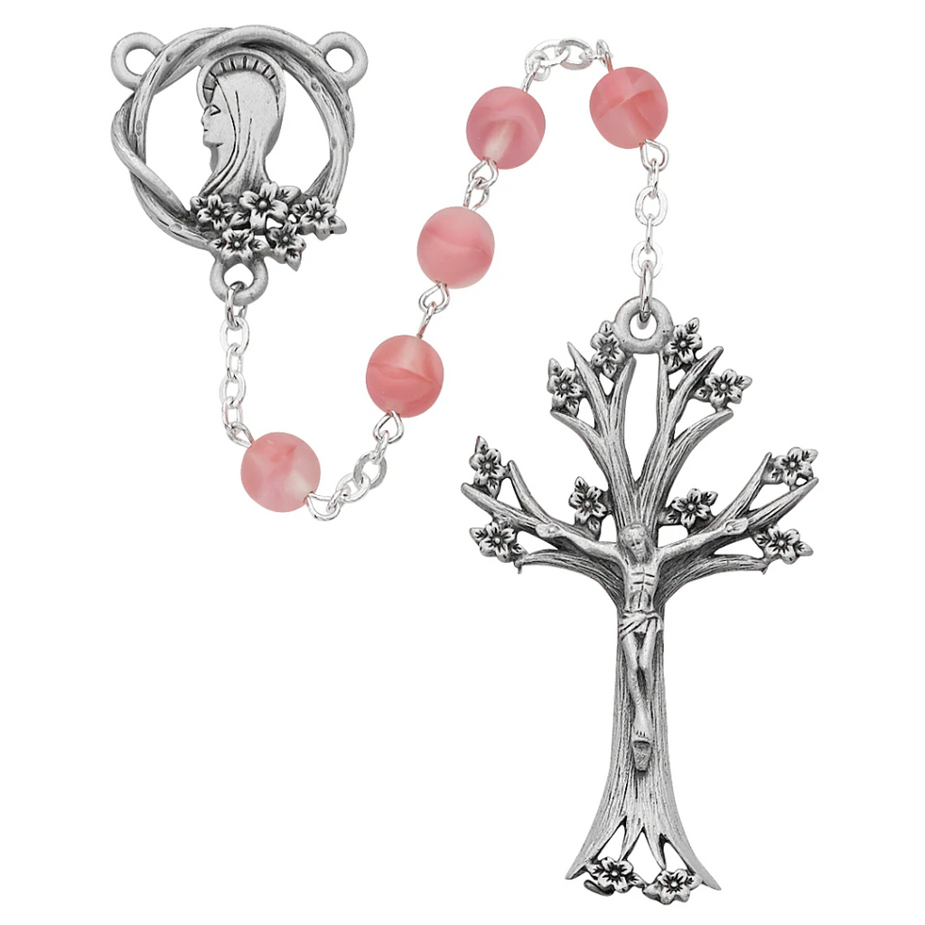 Our Lady of Guadalupe Rosary - Pearl like Glass Boxed