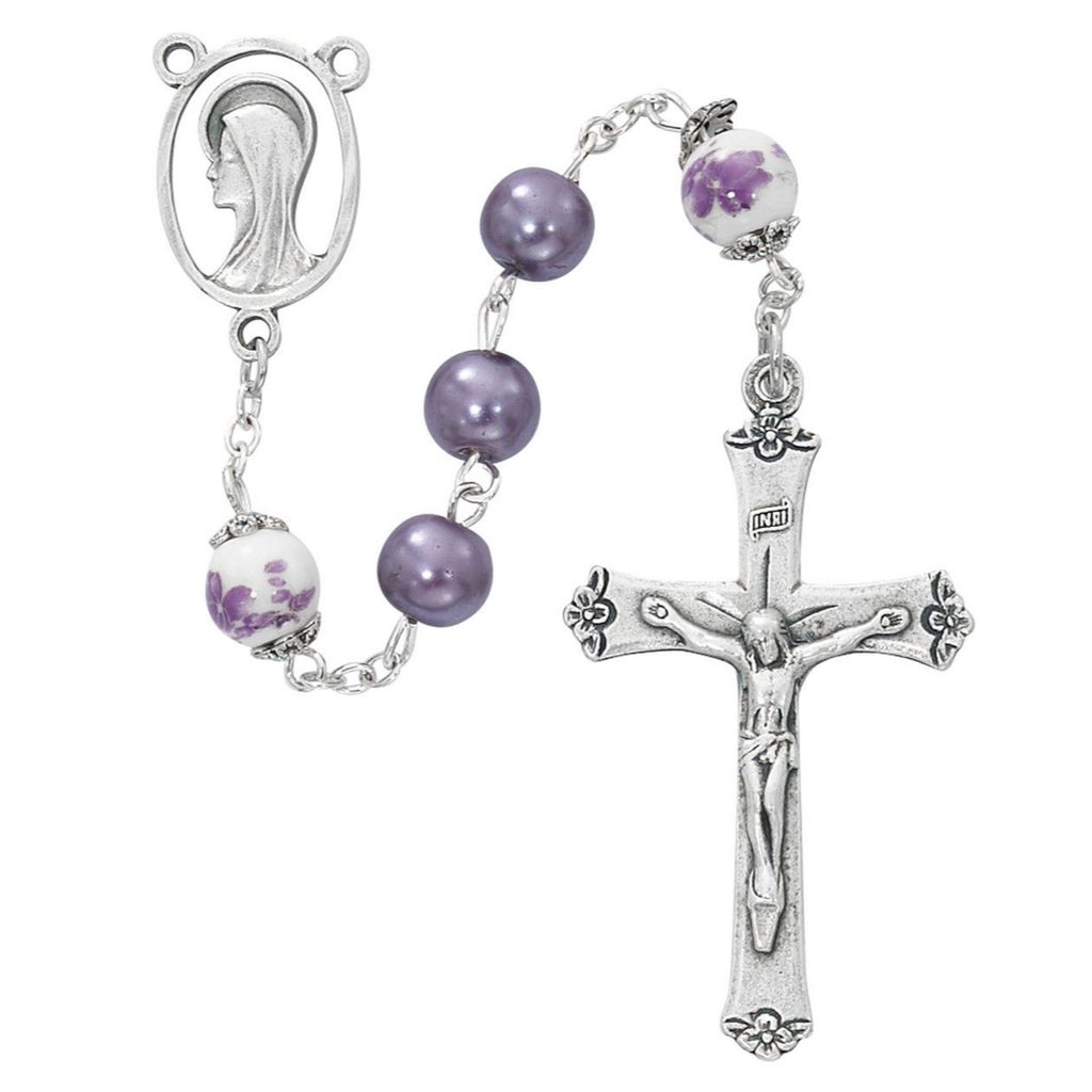 Our Lady of Perpetual Help Rosary - Pearl like Glass Boxed