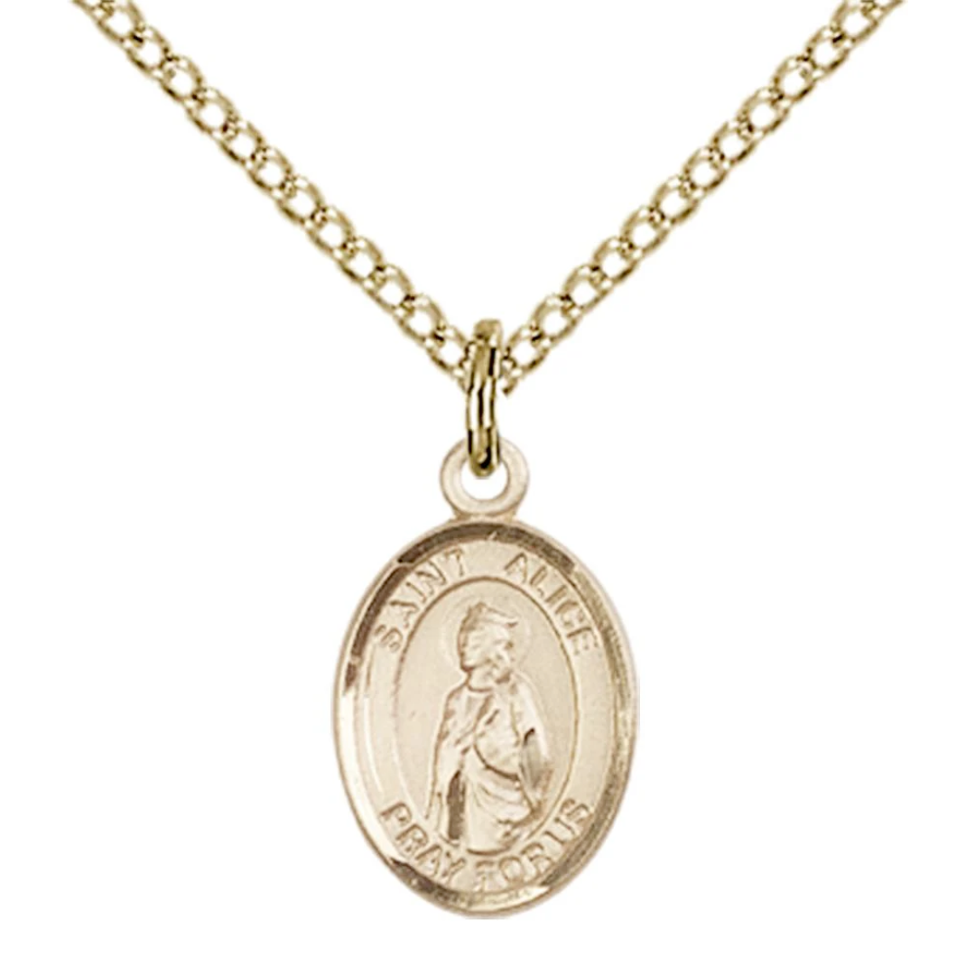 3/4 x 1/2 14kt Gold Filled St. Alice Pendant on 18 inch Gold Filled Light Curb Chain