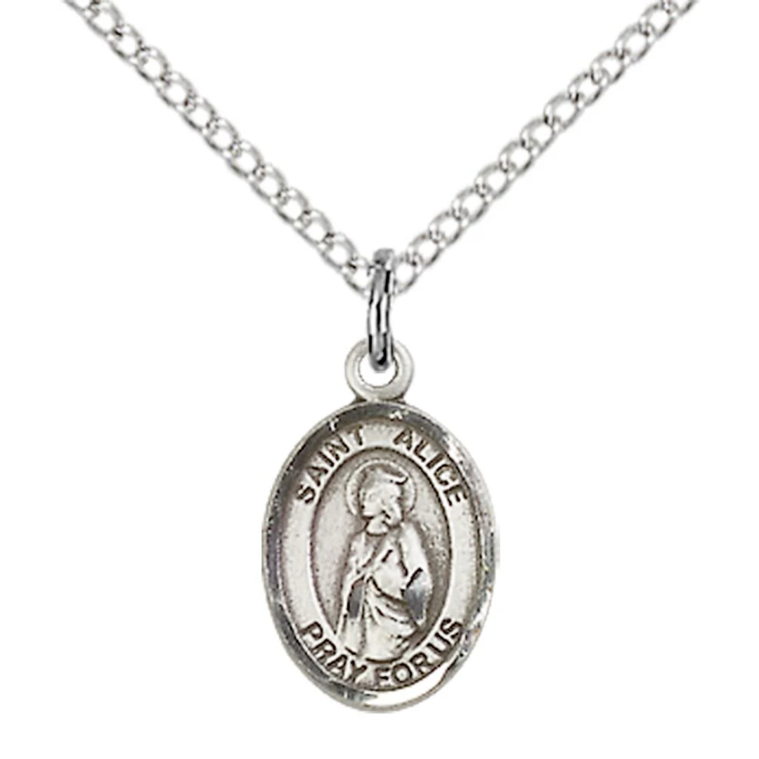 3/4 x 1/2 Sterling Silver St. Alice Pendant on 18 inch Sterling Silver Light Curb Chain