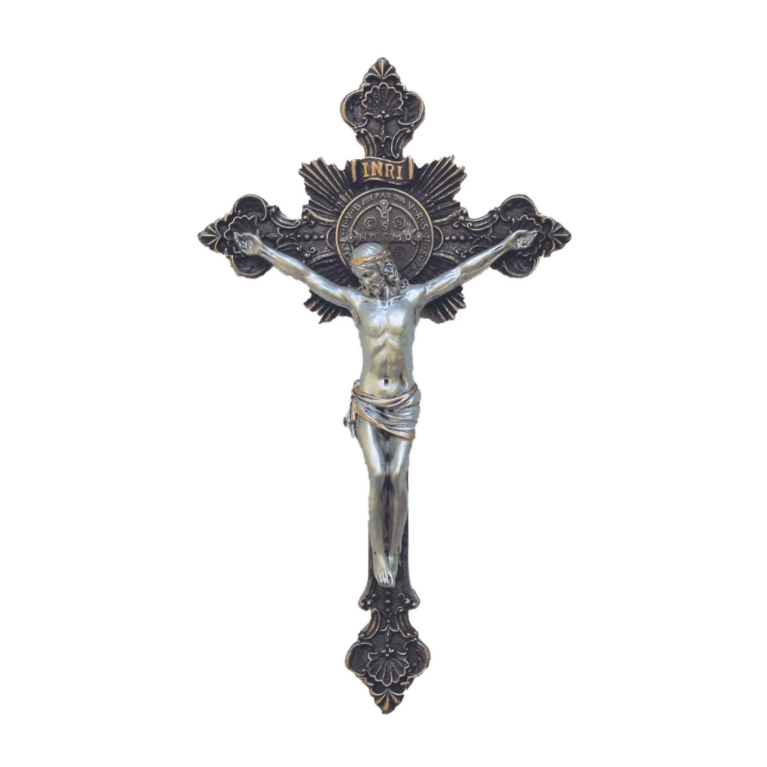 A Veronese St. Benedict crucifix with a pewter style corpus and a bronze cross