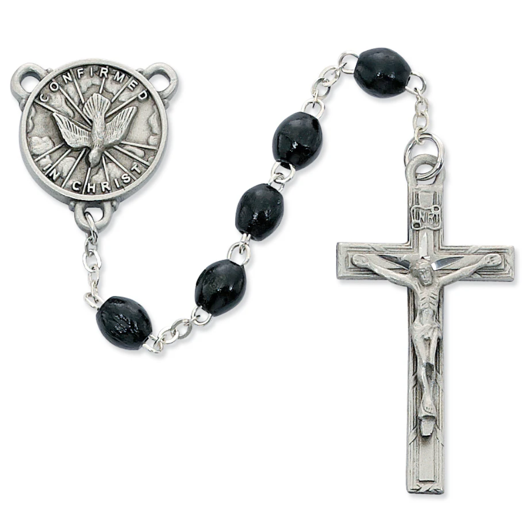 This exquisite Black Wood Holy Spirit Rosary is a reverent keepsake designed to honor the sacred milestone of Confirmation. Handcrafted with 4x6mm black wood beads, each decade flows smoothly through your fingers as you pray, while the beautifully detailed pewter Holy Spirit center and crucifix serve as powerful reminders of faith and grace. Presented in an elegant gift box, this rosary is ready to become a cherished spiritual companion for years to come.