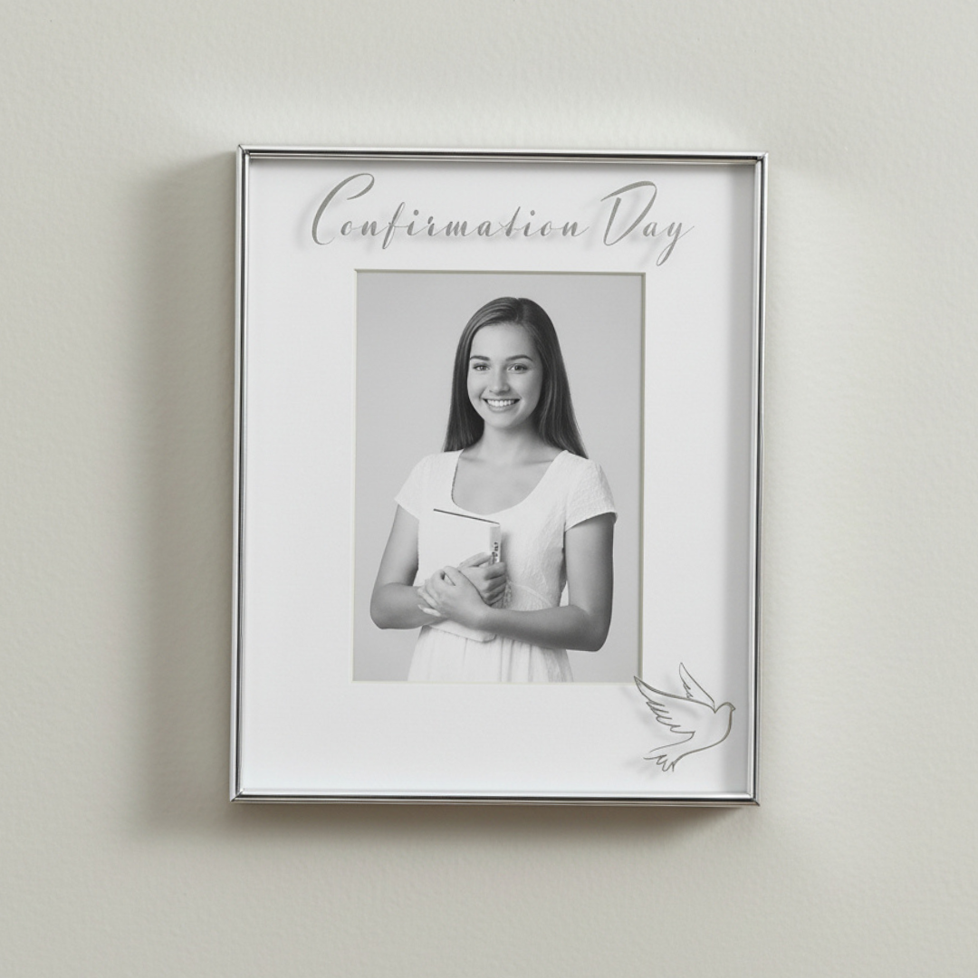 This beautifully crafted Confirmation Day picture frame from Roman's Caroline Collection is designed to honor one of the most sacred milestones in your teen's faith journey. Measuring 8.75 inches, this elegant frame holds a treasured 4x6 photograph from their special day, creating a lasting keepsake that families will cherish for generations. The premium construction and reverent design make it an ideal gift for Confirmation.