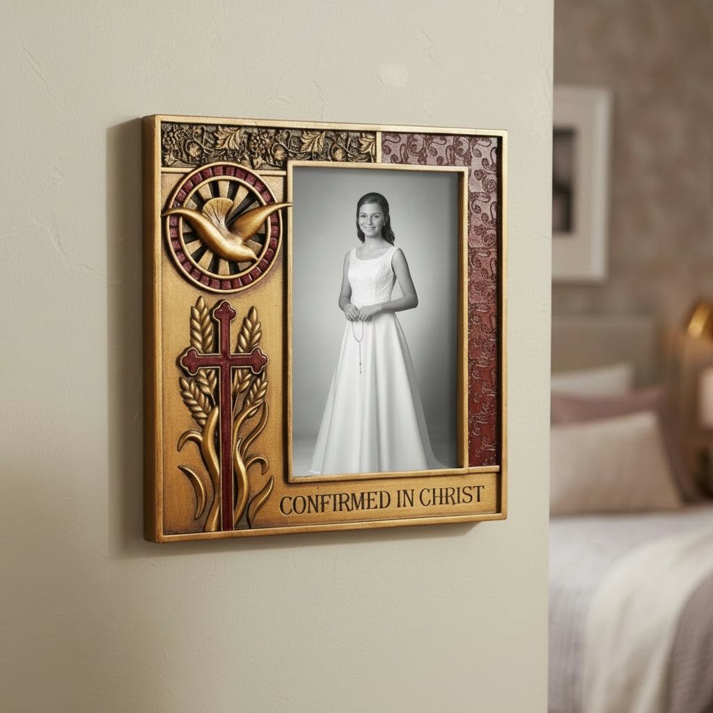 Celebrate the sacred milestone of Confirmation with this beautifully crafted bronze finish frame from Joseph's Studio. Designed to hold a cherished 4x6 photograph, this elegant keepsake combines timeless religious artistry with quality craftsmanship. The warm bronze finish adds a reverent, sophisticated touch that complements any décor, making it a meaningful way to preserve and honor this important moment in faith.