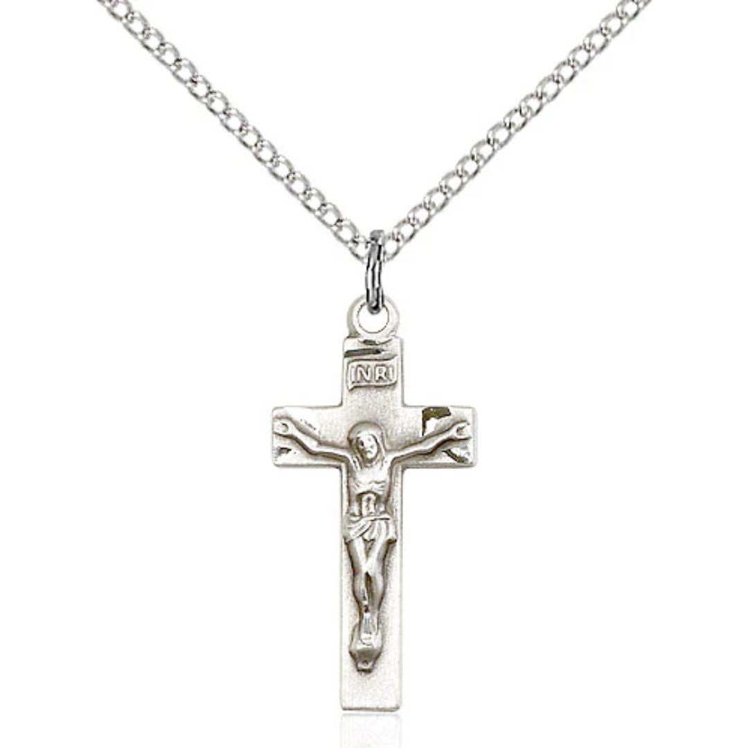 7/8 x 3/8 Sterling Silver Crucifix Pendant on a 18 inch Sterling Silver Light Curb Chain