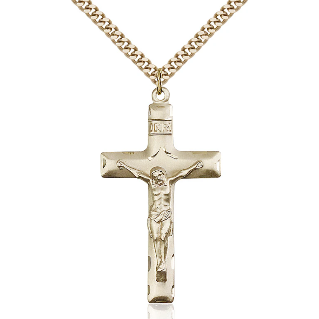 1 5/8 x 7/8 14kt Gold Filled Crucifix Pendant on a 24 inch Gold Plate Heavy Curb Chain