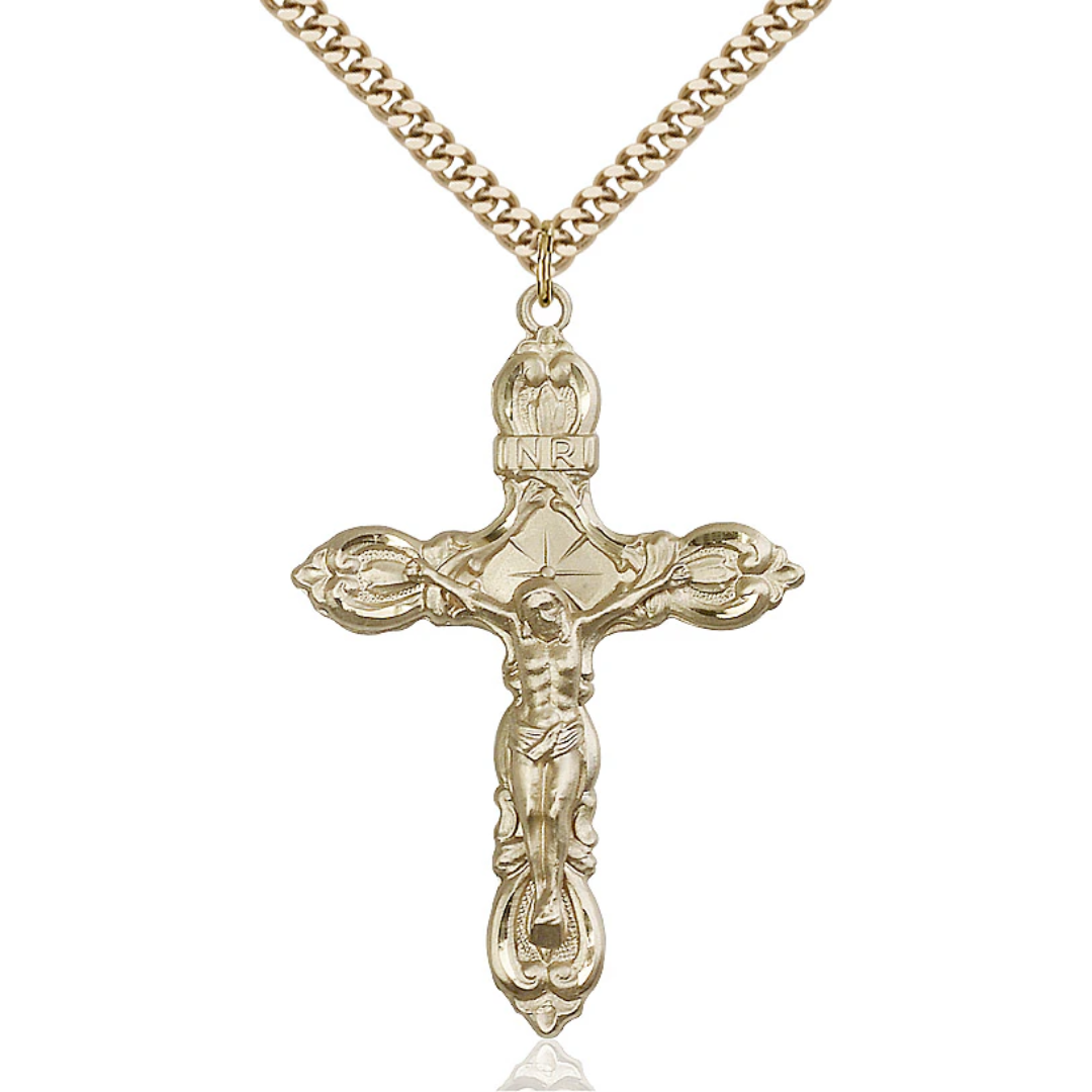 1 7/8 x 1 1/4 14kt Gold Filled Crucifix Pendant on a 24 inch Gold Plate Heavy Curb Chain