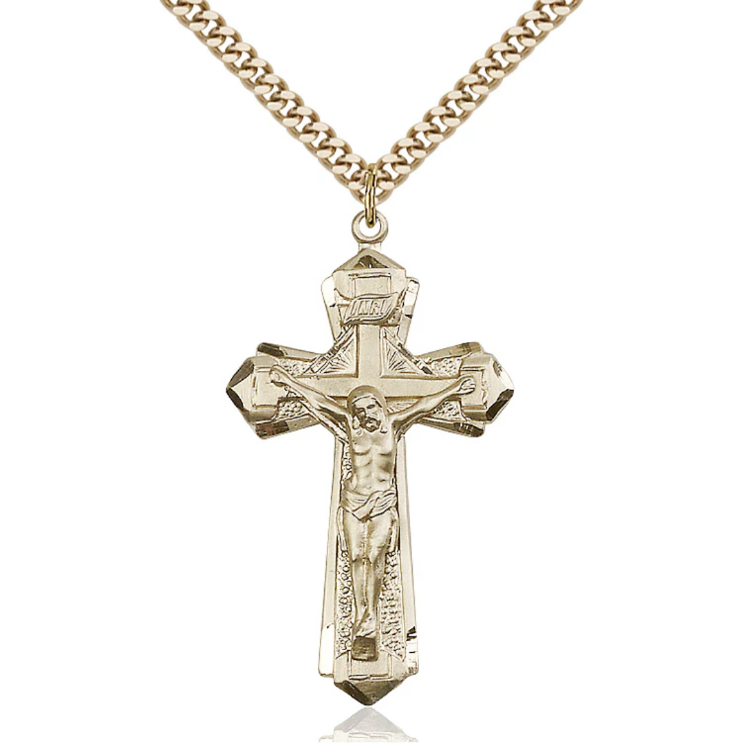 1 5/8 x 7/8 14kt Gold Filled Crucifix Pendant on a 24 inch Gold Plate Heavy Curb Chain