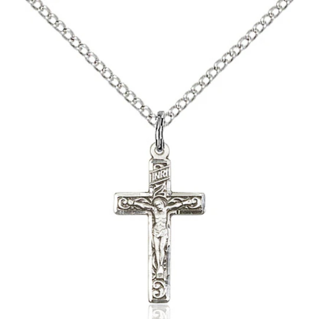 3/4 X 3/8 Sterling Silver Crucifix Pendant on a 18 inch Sterling Silver Light Curb Chain