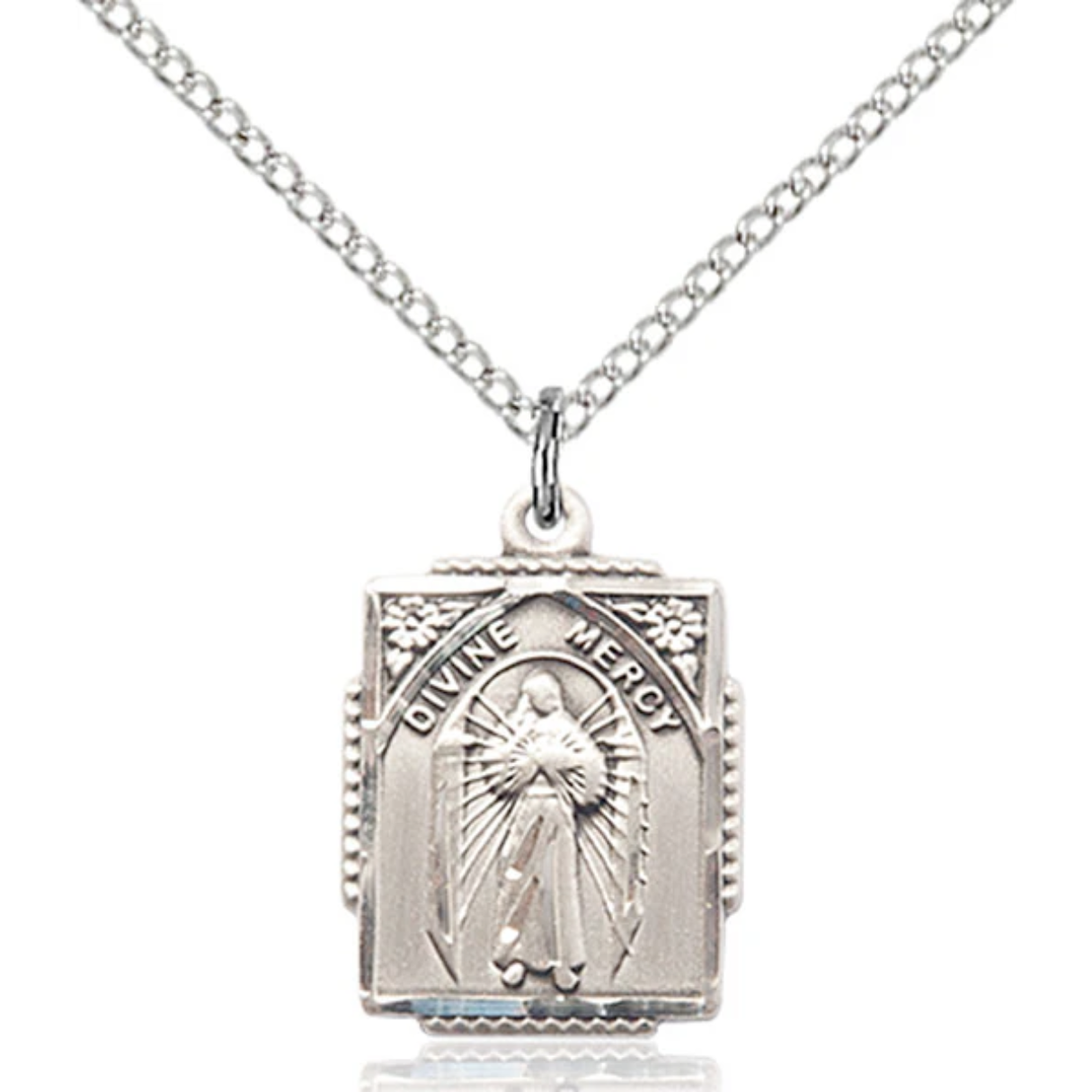 5/8 x 1/2 Sterling Silver Divine Mercy Pendant on a 18 inch Sterling Silver Light Curb Chain