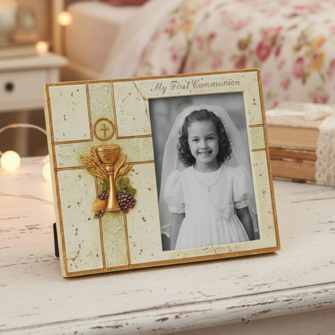 This beautiful frame doesn't just hold a photograph: it preserves a sacred memory and serves as a daily reminder of faith, family, and the grace received through the sacrament of Holy Communion.