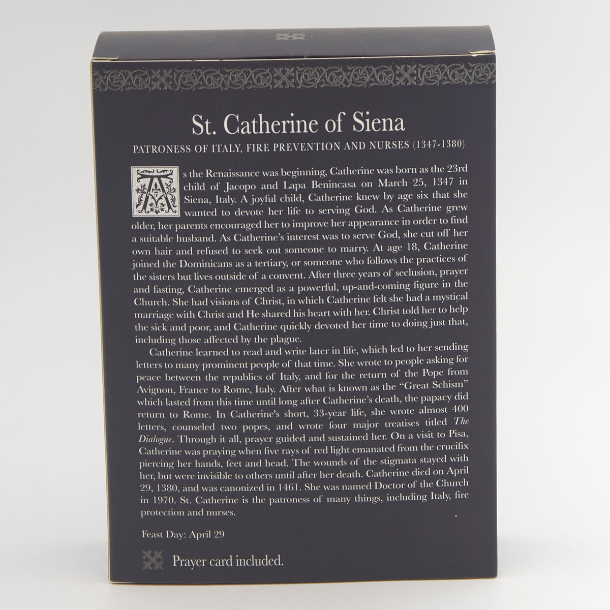 This finely detailed St. Catherine of Siena figure from the Patrons & Protectors Collection honors her deep faith, wisdom, and fearless voice in the Church. A Doctor of the Church and patron of nurses, she is remembered for her courage and compassion in serving others. This devotional piece is a beautiful reminder of strength through prayer, making it ideal for personal reflection, prayer areas, or as an encouraging gift for caregivers and those in healing professions.