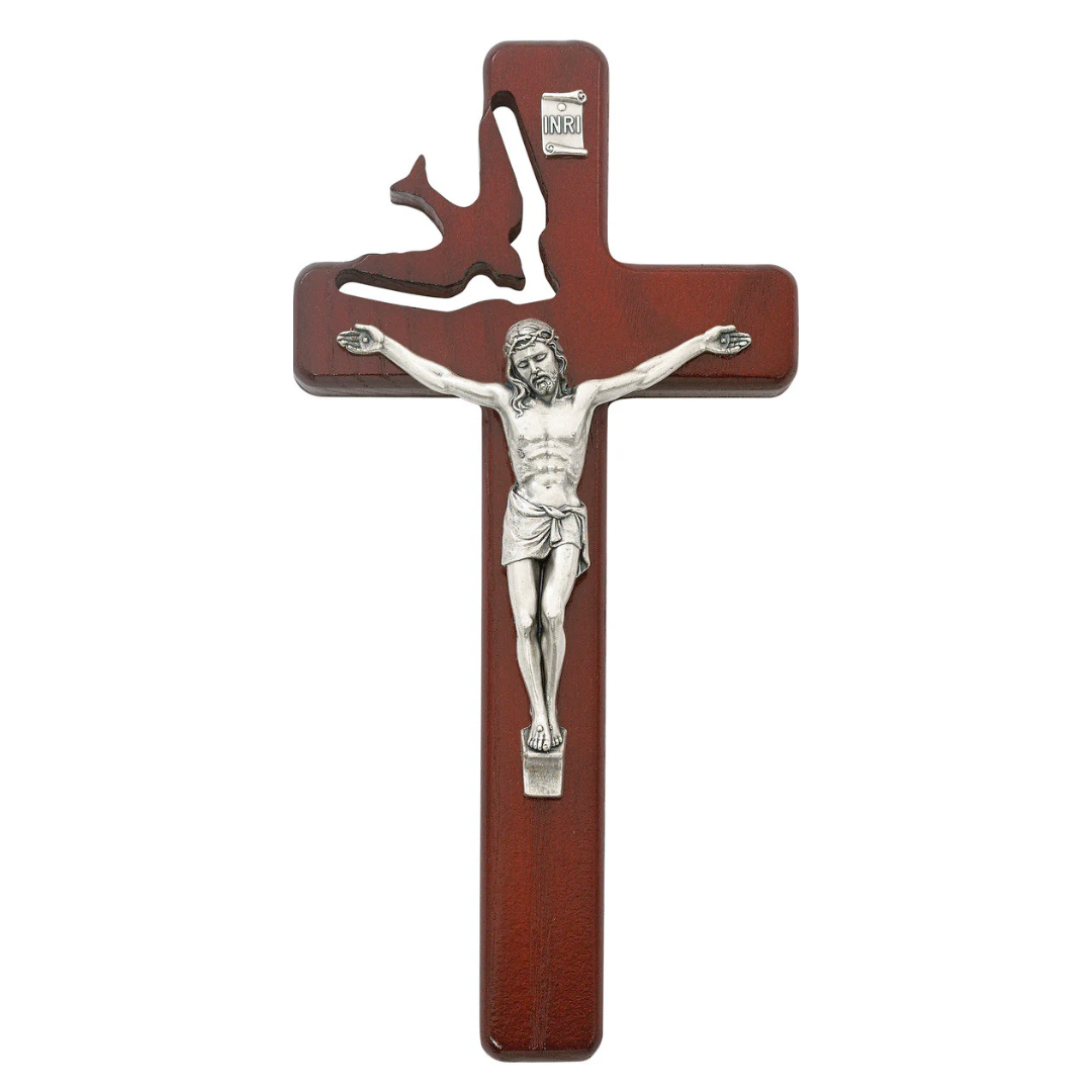 Cherry wood crucifix with Holy Spirit cutout for Confirmation gift