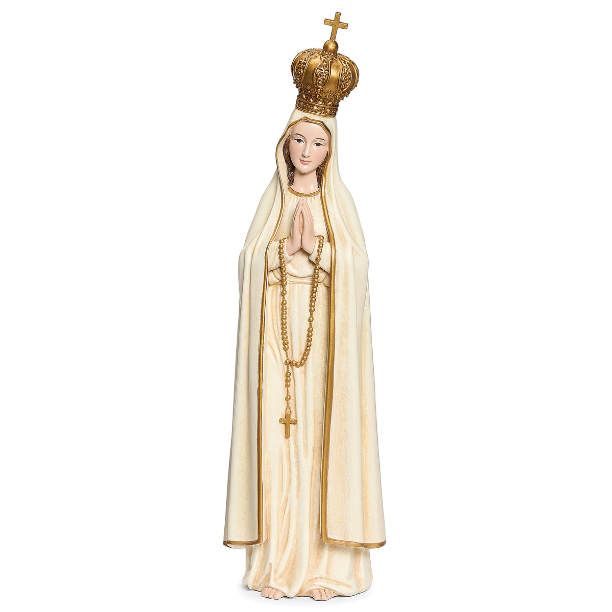 Commemorate the Blessed Virgin™s appearance at Fatima with this finely detailed figure. Depicted in flowing white robes with a rosary in hand, Our Lady of Fatima calls the faithful to prayer, penance, and trust in her Immaculate Heart. This statue is a meaningful devotional addition to home altars, chapels, or serves as a thoughtful gift of faith.