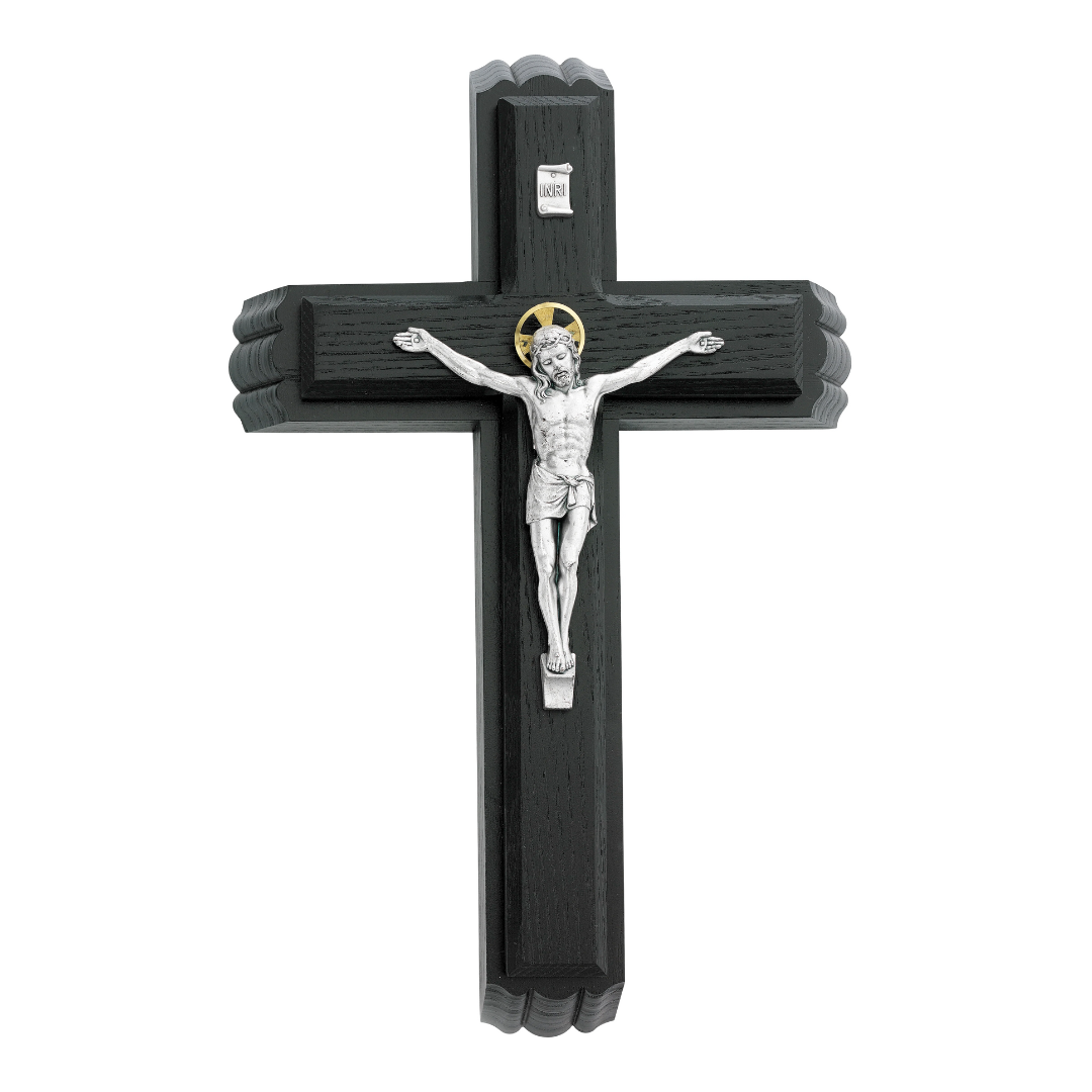Black sick call crucifix set with silver coloring on corpus