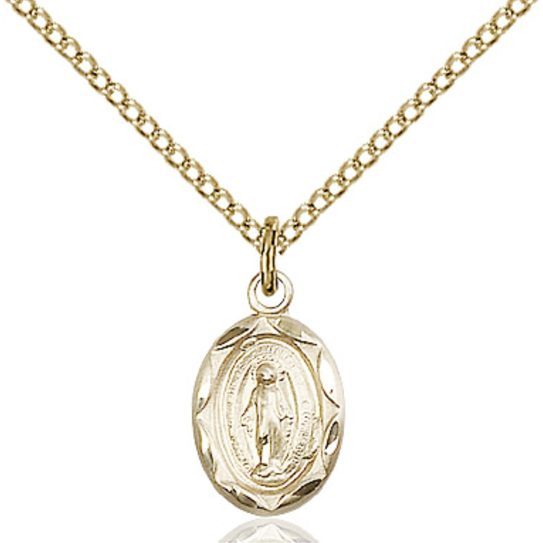1/2 x 1/4 14kt Gold Filled Miraculous Pendant on 18 inch Gold Filled Light Curb Chain
