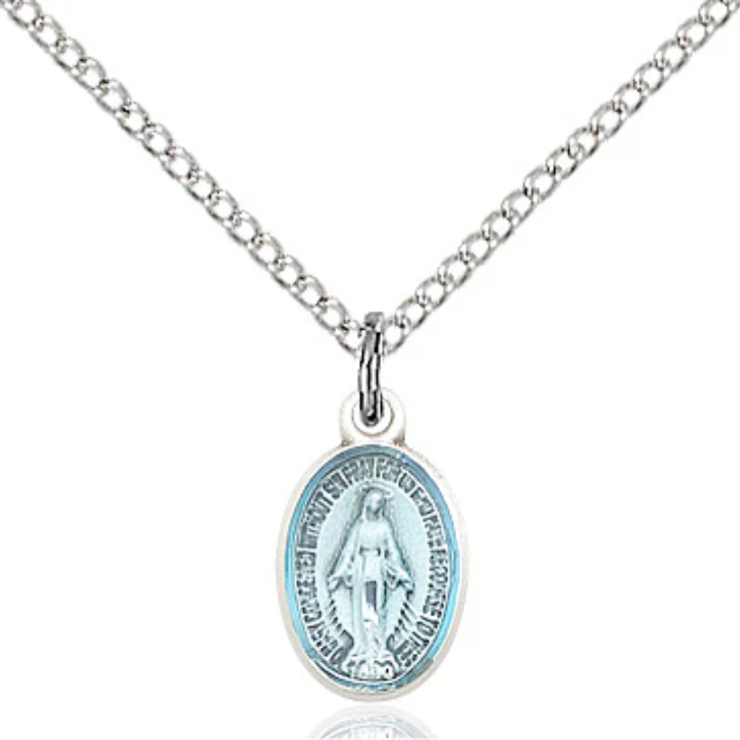 1/2 x 1/4 Sterling Silver Miraculous Pendant on 18 inch Sterling Silver Light Curb Chain