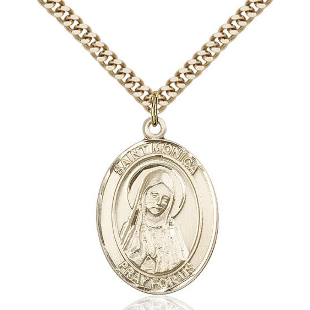 3/4 x 1/2 14kt Gold Filled St. Monica Pendant on 18 inch Gold Filled Light Curb Chain