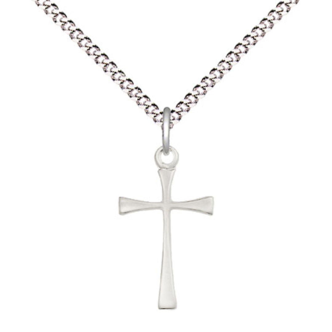 Maltese Cross Medal. Medal Measures 3/4-inch tall by 3/8 - inch wide. Chain is 18 Inches in length Light Rhodium Light Curb Chain with Lobster Claw Clasp.