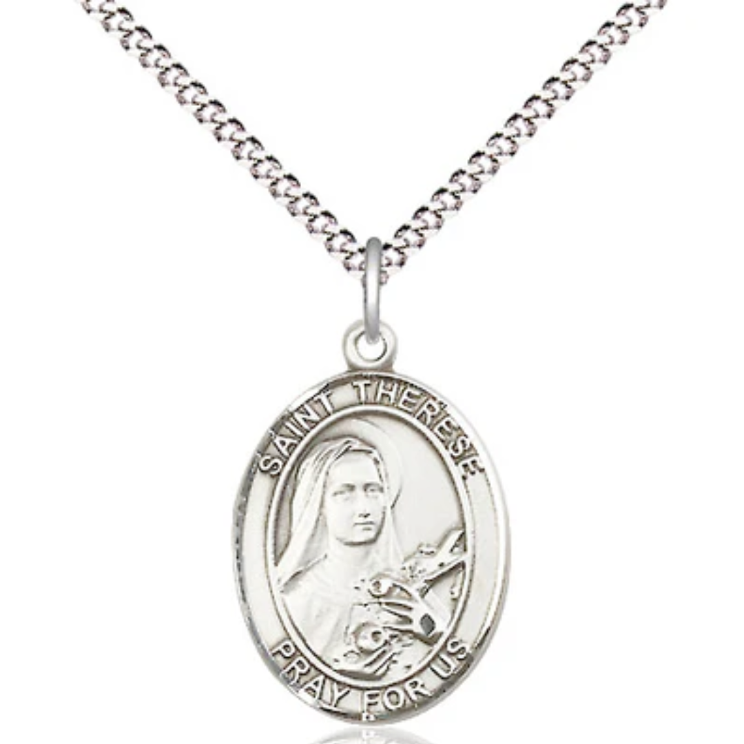 Sterling Silver St Therese of Lisieux Pendant on a 18 inch Light Rhodium Light Curb Chain.